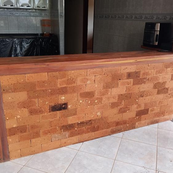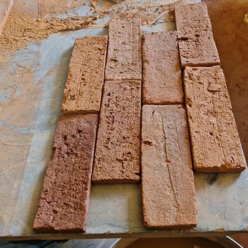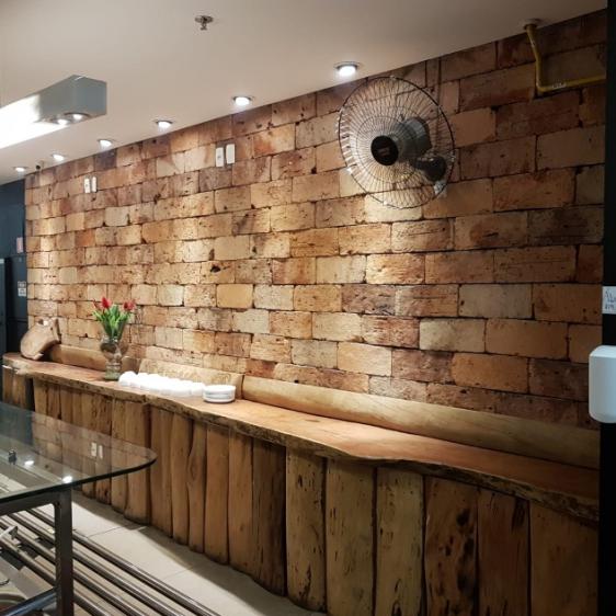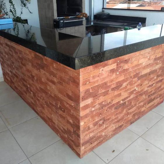 Lâminas de tijolos rústicos usados para revestimentos em paredes, balcões e afins