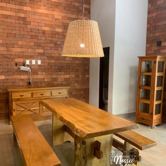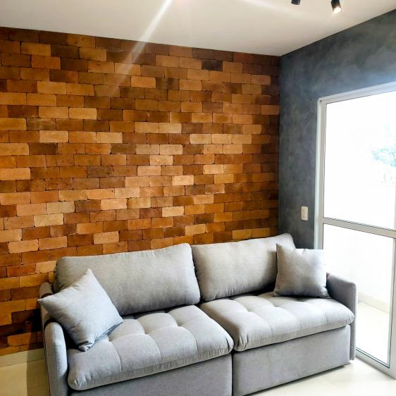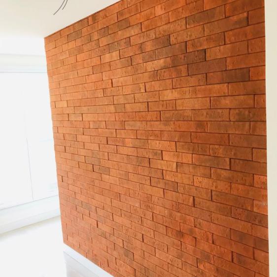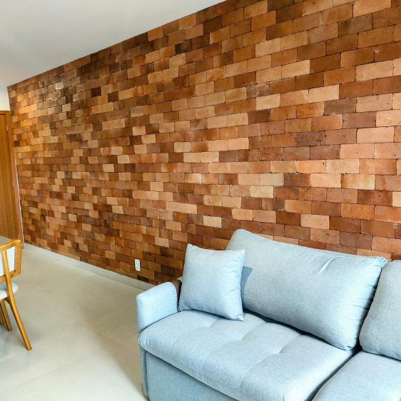 Formada por placas de tijolo, é de fácil instalação e grande durabilidade, podendo ser utilizada em áreas externas e internas, desde fachadas de prédios e residências até salas de estar, cozinhas, banheiros e dormitórios. Permite rapidamente a transformação de qualquer ambiente.
